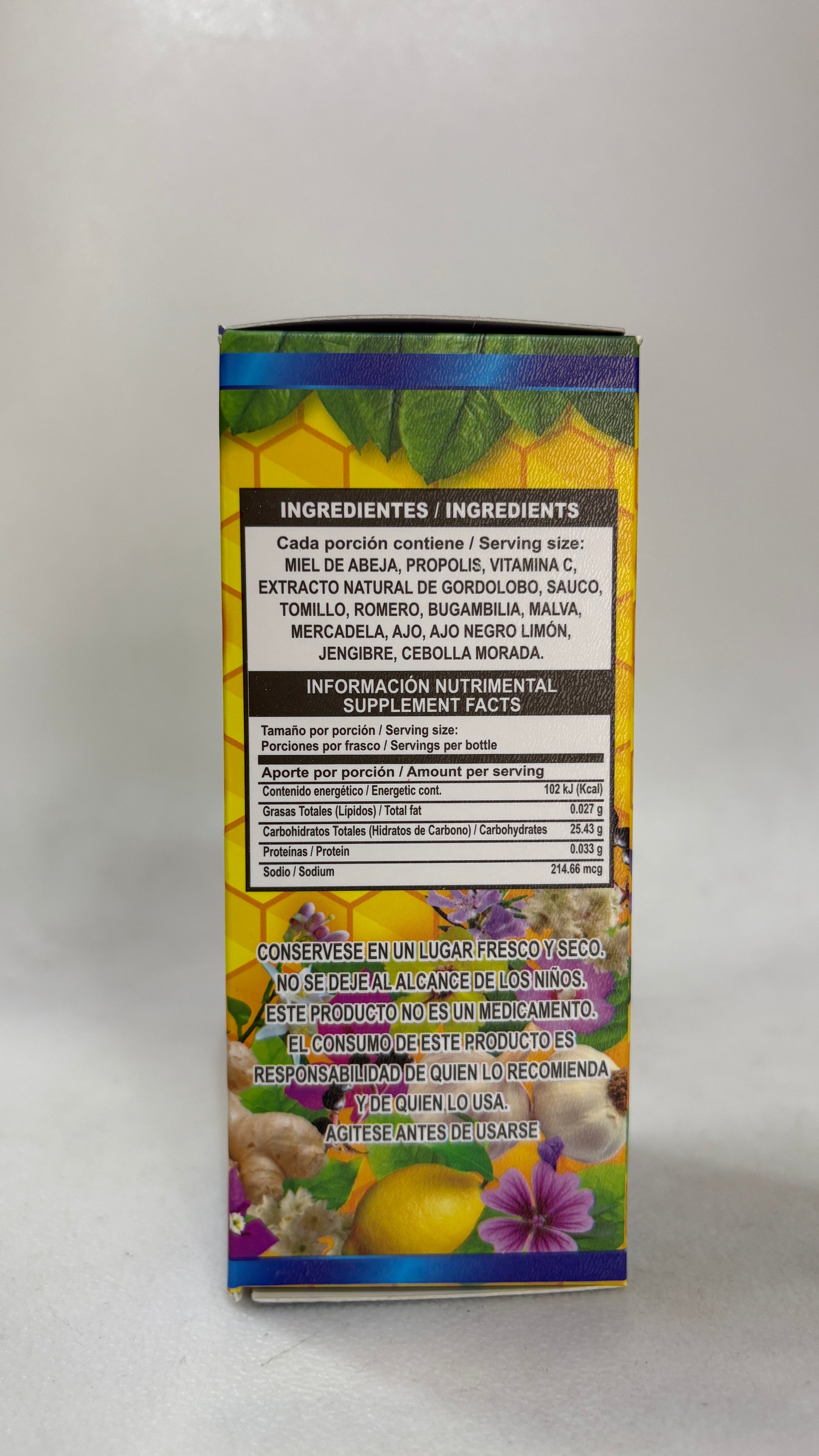 Gran jarabe, base de miel y ajo, jengibre, muy eficaz para tos seca y con flemas. Con todos los beneficios de las plantas del Abango
